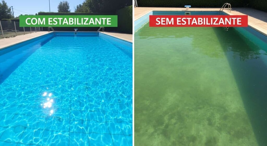 Por que piscinas descobertas precisam de estabilizante