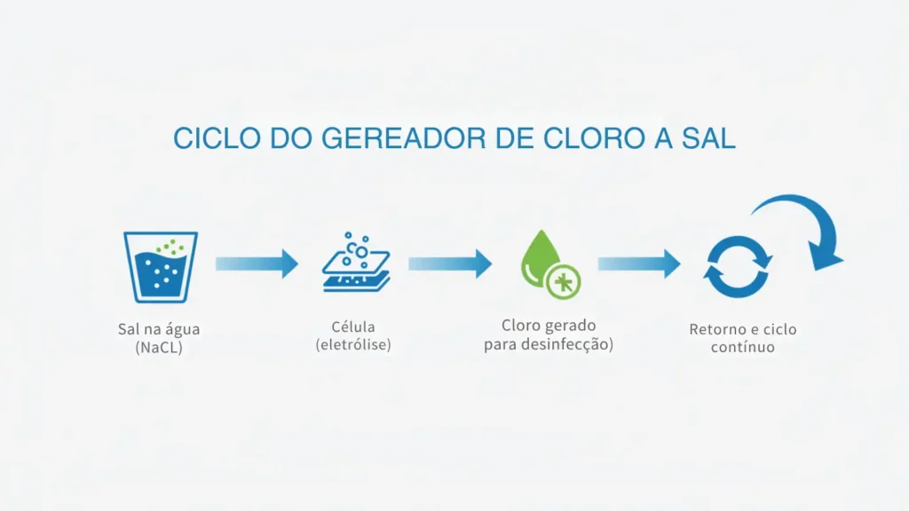 A célula do gerador a sal dura anos na maioria dos cenários, mas a “régua” real é: horas de geração + qualidade do equilíbrio químico + presença de incrustação. Quem mantém pH/alcalinidade/dureza controlados e usa o gerador dentro de parâmetros tende a obter uma vida útil muito melhor — e previsível.
